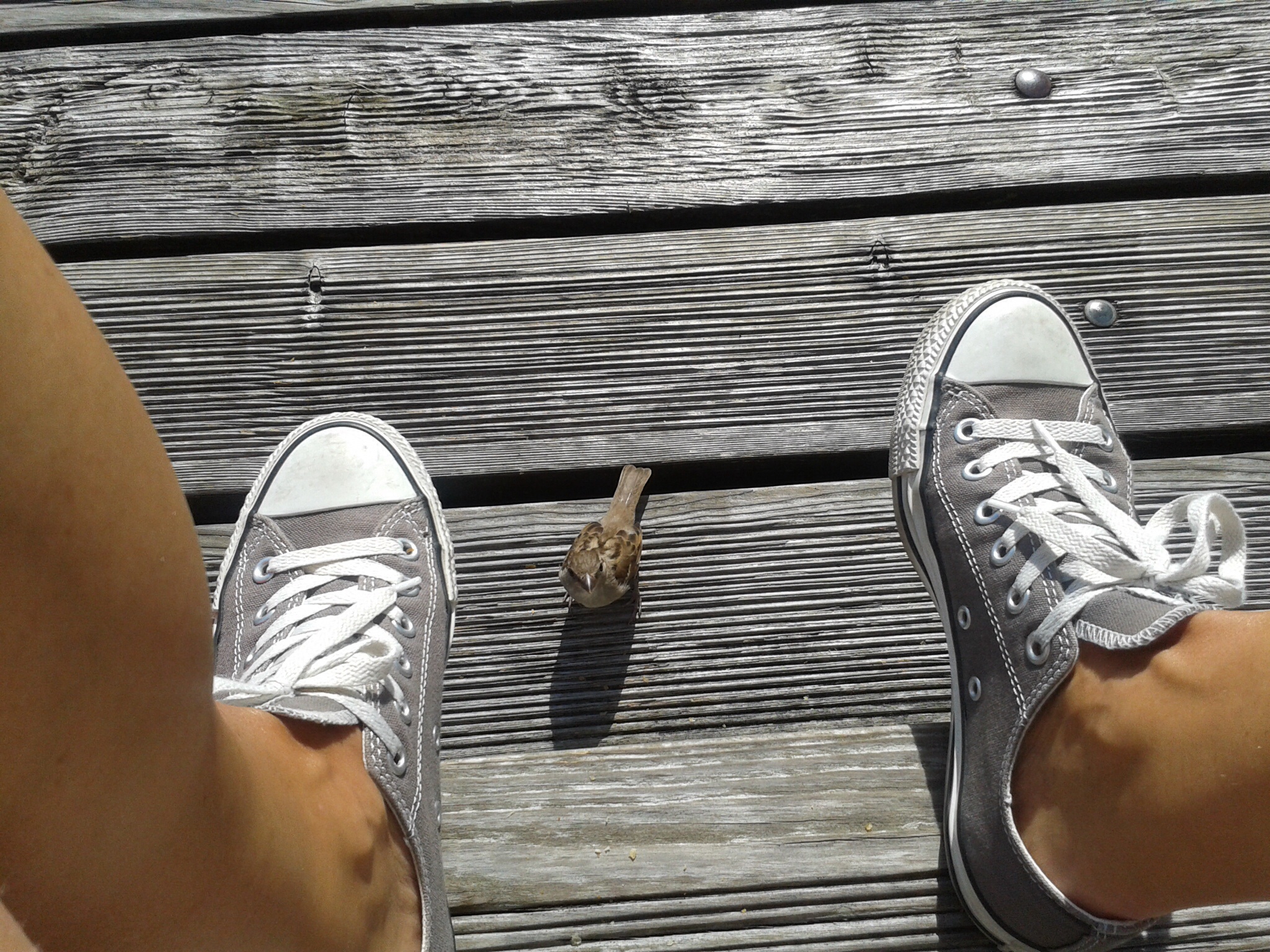 Wie dieser kleine Spatz, der in Hergiswil am Vierwaldstättersee mit mir ein Gipfeli gefrühstückt hat.
