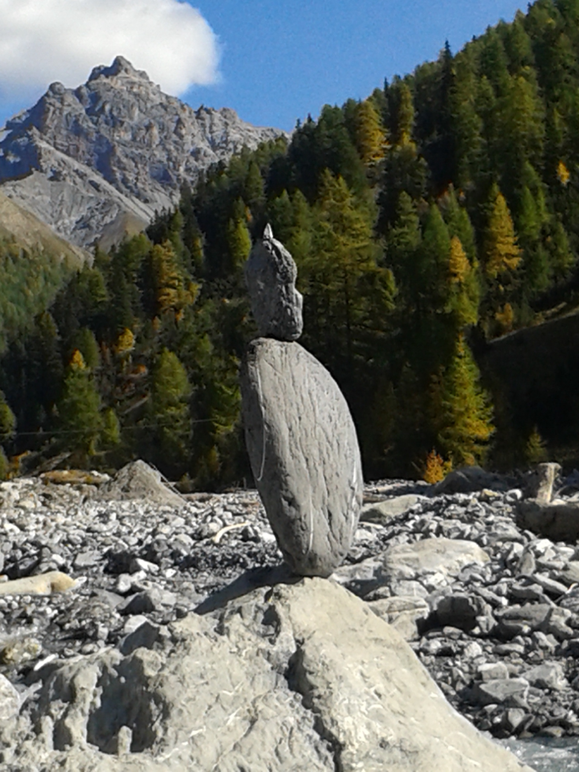 Ich bewundere die Menschen, die am Flusslauf nach den passenden Steinen suchen und sie dann geduldig formieren. Schon manches mal bin ich staunend vor Steinfiguren gestanden und musste dem Reflex widerstehen, die Figur anzufassen.