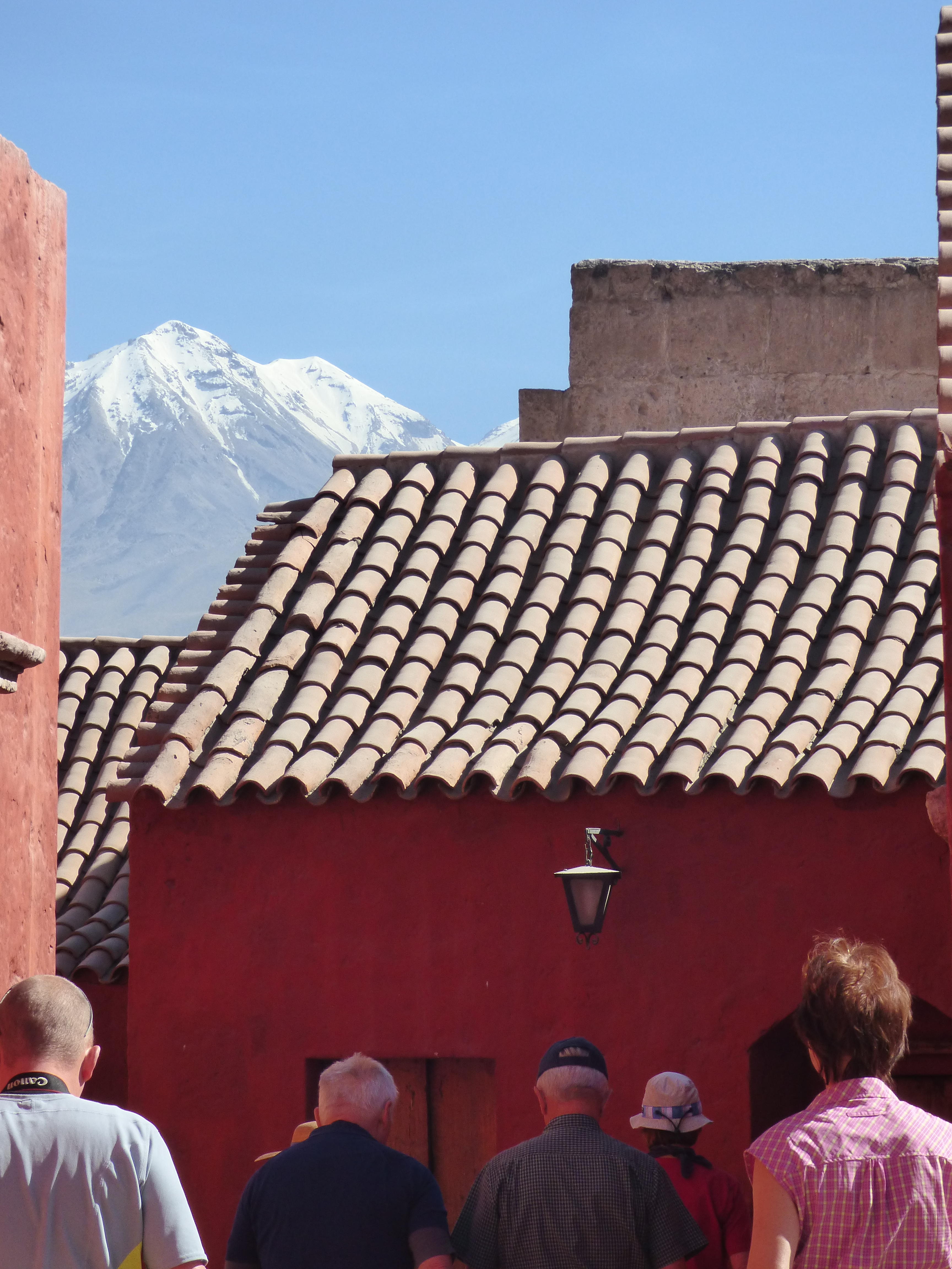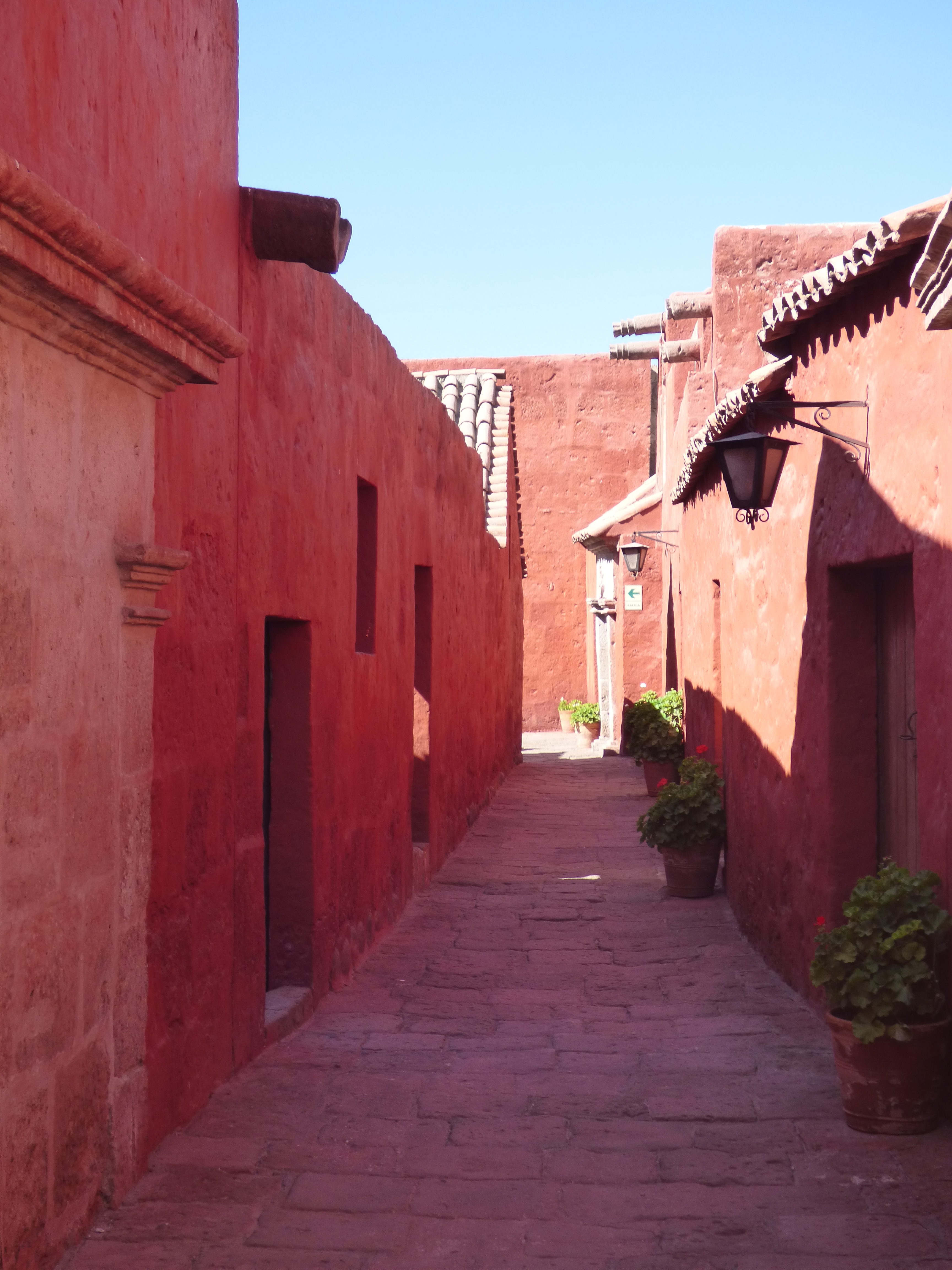 Arequipa – sehr schöne Kolonialstadt mit Gebäuden aus weissem Tuffstein. Ausgenommen dem Kloster, das sich in den typischen Inkafarben präsentiert.