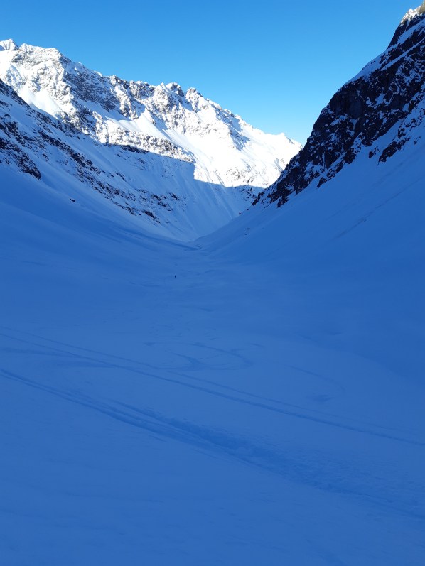 Während ich 1 1/2 Std. auf meine Skitourenkumpels warte, würde ich das wieder gerne tun. Stattdessen ärgere ich mich, dass ich aus Gewichtsersparnis mein Buch nicht mitgenommen habe. Zeit, um auf den steilen Hang zu starren, den ich am nächsten Morgen mit meinen Skiern hinauflaufen will – soll – muss und um an den Weg zu denken, der vor mir liegt.