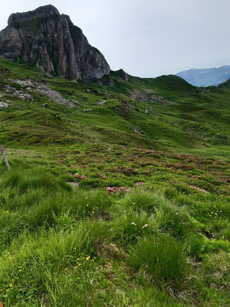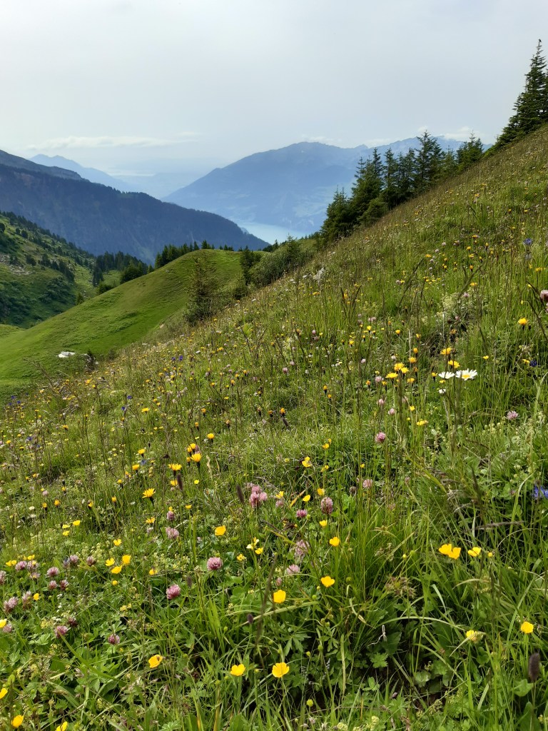 Die Stille in meinem Kopf, bis auch der letzte Gedanke keine Chance mehr hat, da all meine Aufmerksamkeit auf die vielen Blumen in allen Farben, Grössen und Erscheinungsformen gelenkt wird. Kein einziges Blümchen denkt an das Gestern mit dem vielen Schnee unter dem es so lange hat warten müssen, denkt auch nicht an Morgen und die prophezeiten Starkregenfälle, die ihm das Leben schwer machen könnten. Sie sind im Jetzt und in diesem Moment in all ihrer Pracht für mich da. Jede Arve wird von mir begutachtet, ob sie blüht und streife ich über einen Ast mit Blüten, legt sich der feine Staub auf meine Hände und trage ihn mit mir mit.