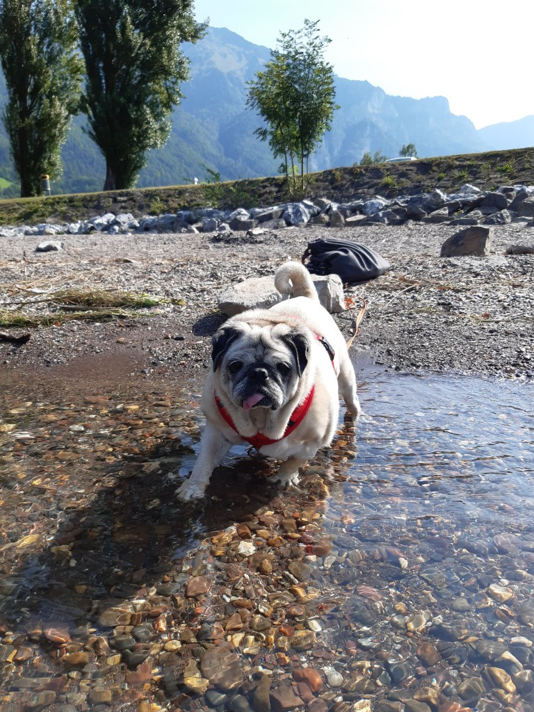 Nach 2 Monaten habe ich das erste Mal wieder Wanderschuhe an. In der Gewissheit, dass ich keine Wanderung verpassen werde, dass die Berge mir nicht davonlaufen, durfte ich mich in den letzten Wochen in Langsamkeit beim gehen üben. Meine 13jährige Mops-Dame bevorzugt keine holprigen und steinigen Wanderwege und locke ich sie dann doch mal auf einen, boykottiert sie bockbeinig und ich füge mich. Wir waren sehr oft am See und schauten der Welt zu, wie sich ihr Spiegelbild im Wasser verändert.