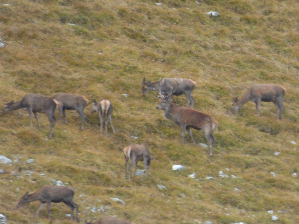 und oberhalb von den Hirschen klettert eine kleine Herde Gemsen, so nah bei den Hirschen, wie ich es zuvor auch noch nie erleben durfte.