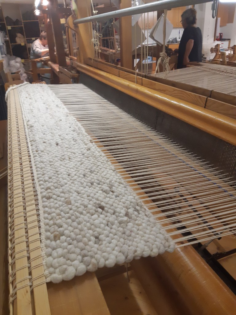 Ich brauche nur den grossen Webstuhl und 8 kg gewalkte Teppichwolle zum Weben.