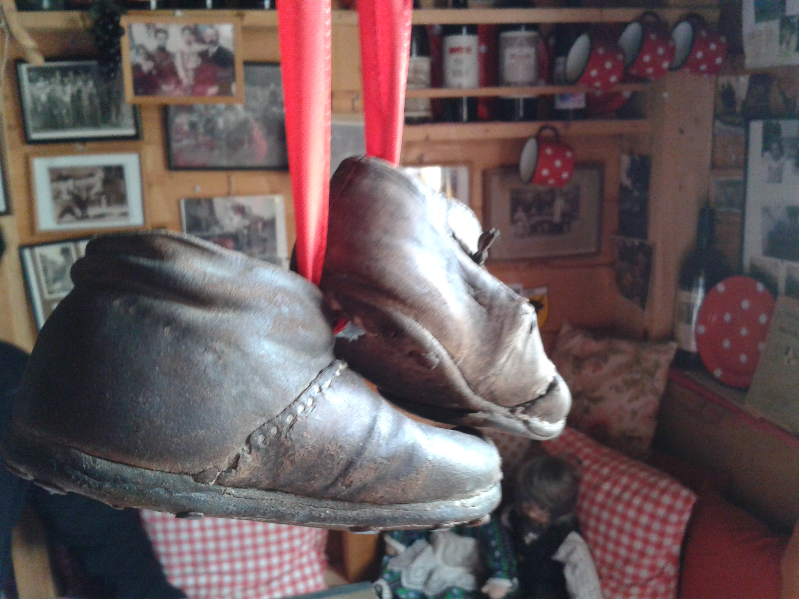 „Komm, wir gehen rein. Ich hatte Besuch vom Eichen-Ueli und jetzt hab ich kalt. Er ist schon 92 Jahre alt, aber FIT!“ Ihre kleine Hütte mitten in den Rebbergen ist kalt und klamm. Nur ein paar Quadratmeter mit einer Eckbank, einem Stuhl, einem schmalen Schrank, einem Gasofen, vielen Bildern und Unmengen Krimskrams. Vorallem aber alte, sehr alte Schuhe, die von der Decke hängen. Damen-, Herren-, Kinder- und Wanderschuhe. Mich erinnern einige Modelle an Karl Valentin und Charlie Chaplin.