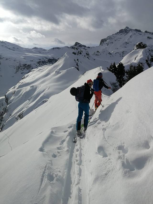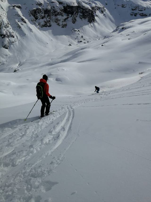Abfahrt durch frischen Pulverschnee zur Grialetschhütte